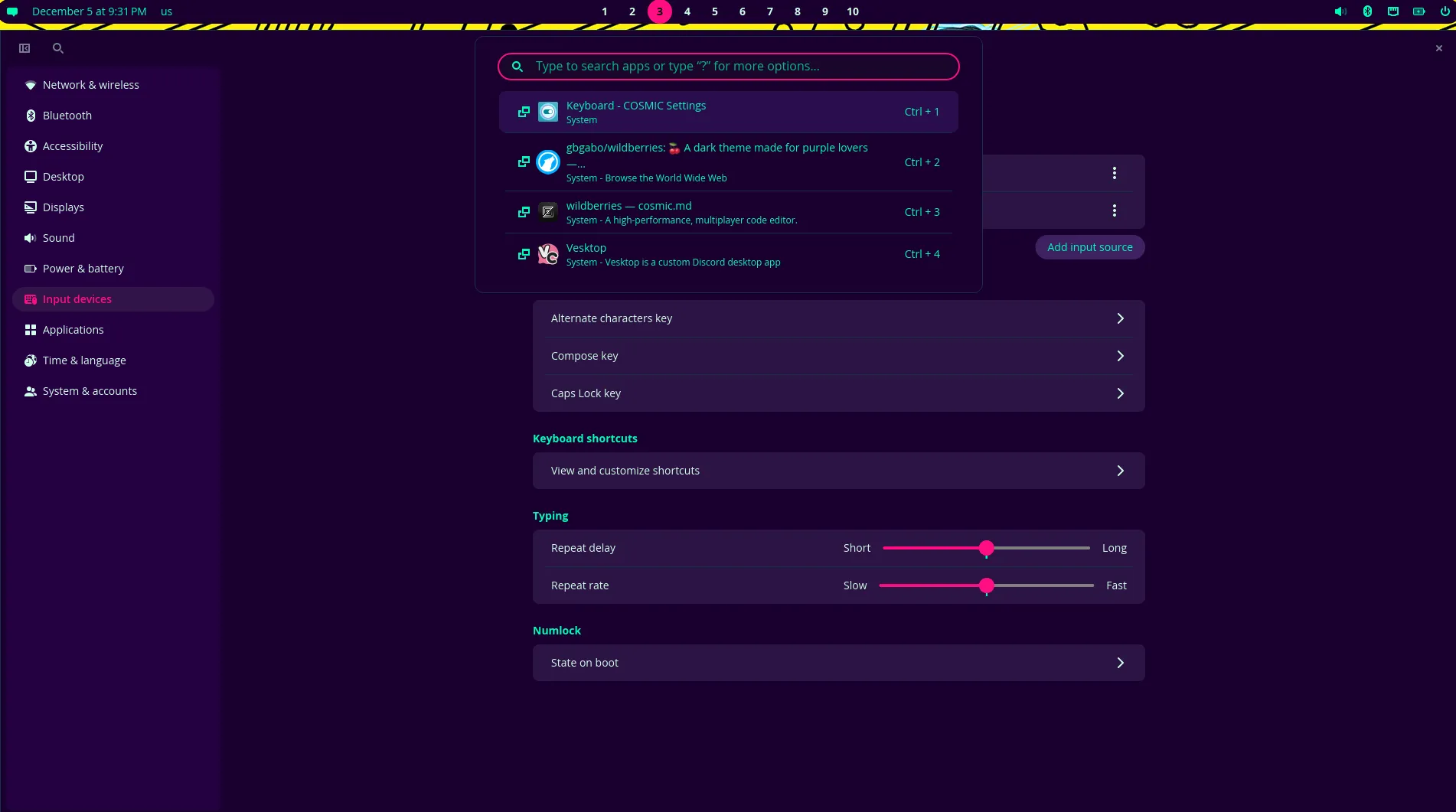 - Go to Cosmic Settings -> Desktop -> Appearance -> Import